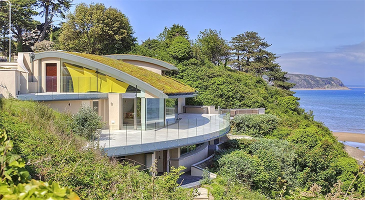 This beachfront holiday home is nothing short of a grand design. With not a single straight line in its architecture, the project was a challenge from start to finish — pushing boundaries in both engineering and design. Every curve and contour was meticulously planned to complement its stunning coastal surroundings. The end result is nothing less than breathtaking, and it has quickly become the talk of the seaside resort of Abersoch. A true landmark property, it stands as a testament to innovative design and craftsmanship.